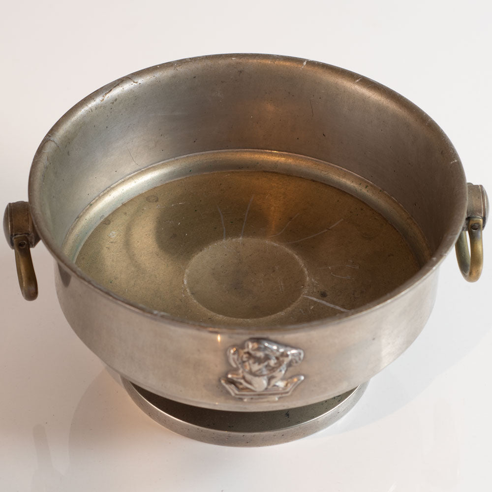 Art deco pewter raised bowl w/ woman motif. c.1931