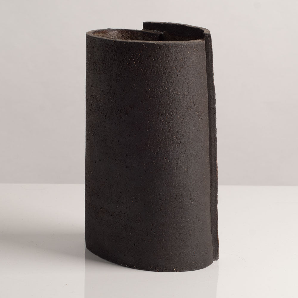'Wrap pot', unique stoneware  vase with matte and glossy glaze in blue and off white glaze  c. 2010s.