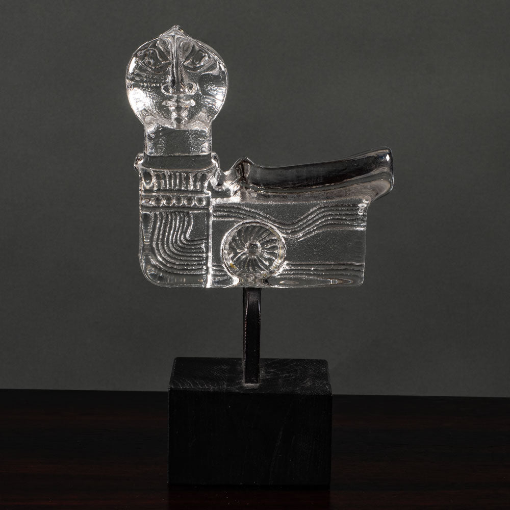 Erik Hoglund for Boda, Sweden, glass sculpture on iron stand, L3029