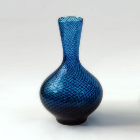 Hadeland, handblown glass vase in blue glass, with spiral threads of darker blue glass N723