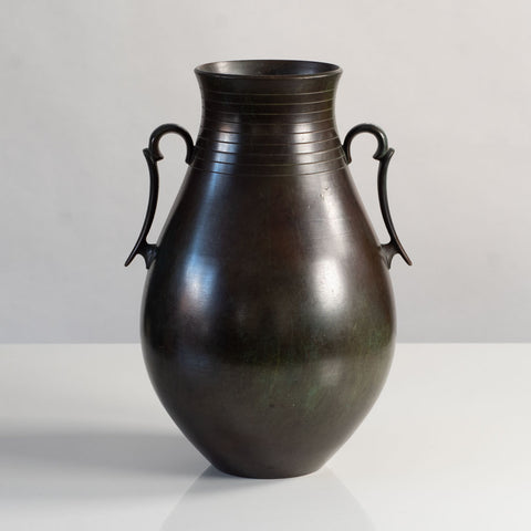 Just Andersen for GAB, Sweden, ribbed bronze handled vase L3081