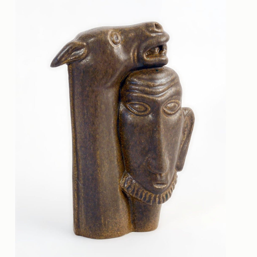 Stoneware figure with matte brown glaze by Åke Holm N7656