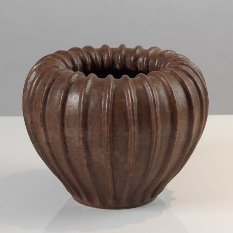 Arne Bang, Denmark, fluted vase with pale brown glaze F8088