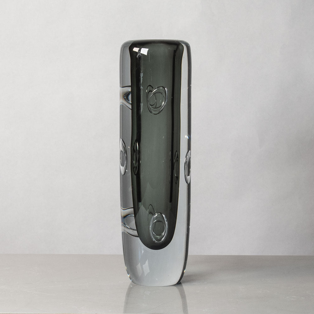 Asta Strömberg for Strömbergshyttan, clear gray glass vase with circular bubbles K2030
