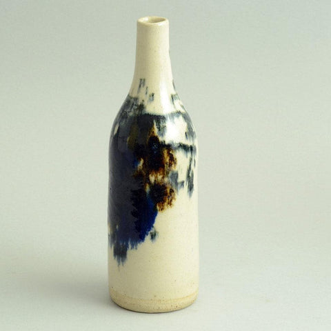 Her early work consisted of high fired earthenware, simply decorated with thick glossy glazes, before moving on to high fired stoneware with ash glazes (askeglasurer).
