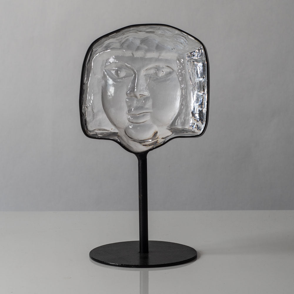 Erik Hoglund for Boda, Sweden, glass sculpture on iron stand K2777