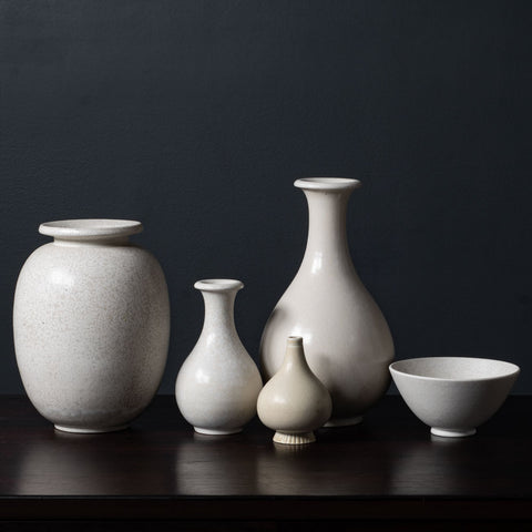 Group of vessels with white glaze by Gunnar Nylund for Rörstrand