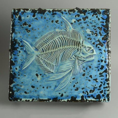 Unique tin-glazed fajance plaque with fish by Hans Hedberg A1393