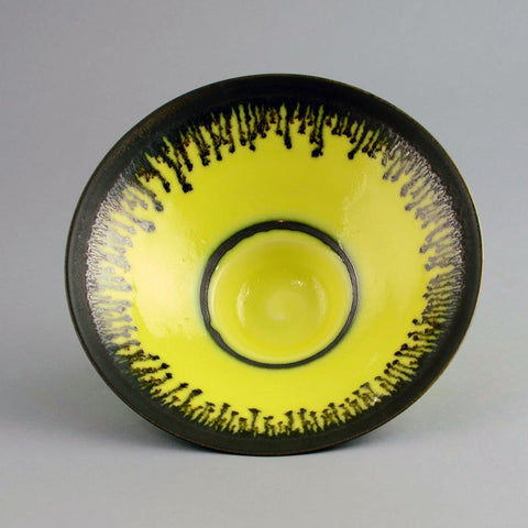 Peter Wills bowl with yellow and dripping metallic glaze D6030
