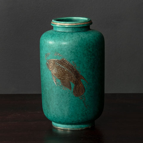 Wilhelm Kåge for Gustavsberg, Sweden, "Argenta" footed bowl with fish illustration H1576