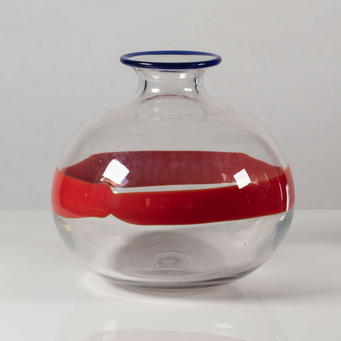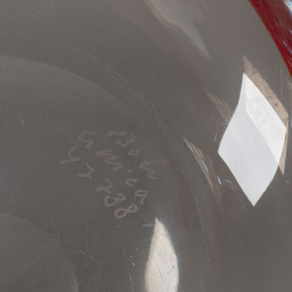 Edvin Ohrstrom for Orrefors, Sweden, Ariel" vase with red pattern of rectangles J1560