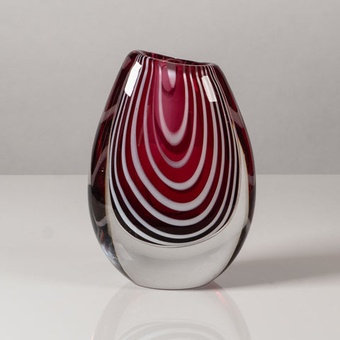 Edvin Ohrstrom for Orrefors, Sweden, Ariel" vase with red pattern of rectangles J1560
