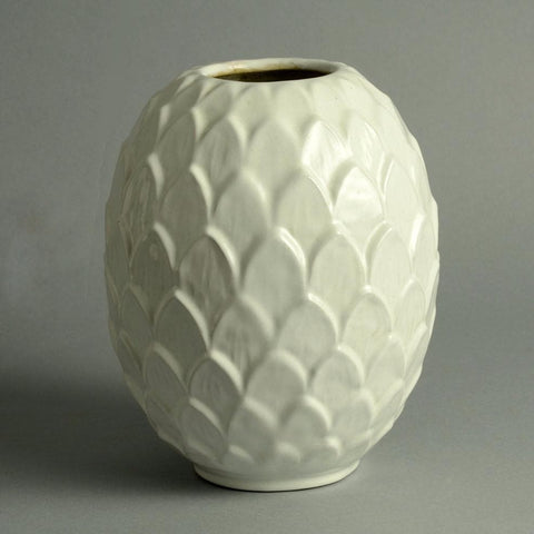 Arne Bang, Denmark, fluted vase with off white glaze G9301