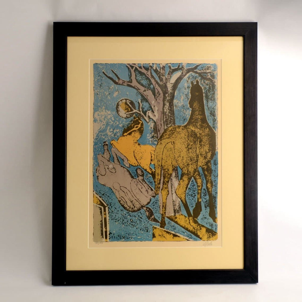 Lithograph with scene of deer in woodland by Axel Salto N6646