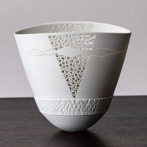 Horst Göbbels, own studio, Germany, porcelain pierced vase H1209