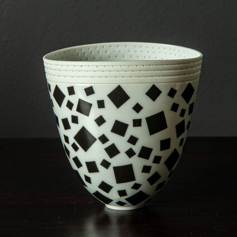 Horst Göbbels, own studio, Germany, porcelain pierced vase with black squares H1208