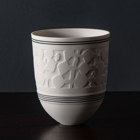 Horst Göbbels, own studio, Germany, porcelain vase with pattern in relief J1316
