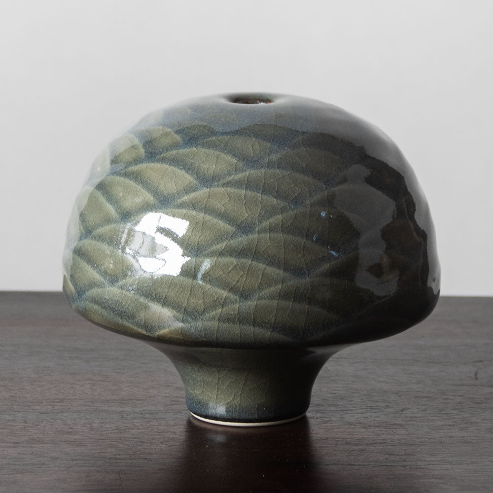 Karl Scheid, own studio, sculptural vessel with tenmoku glaze G9094