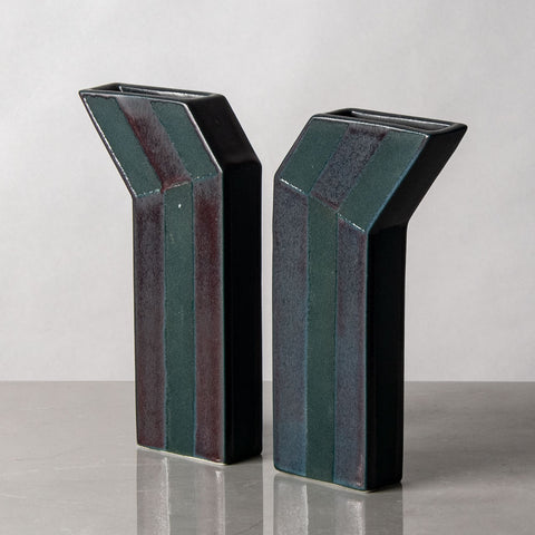 Karl Scheid, Germany, pair of vases with green and red glaze J1280