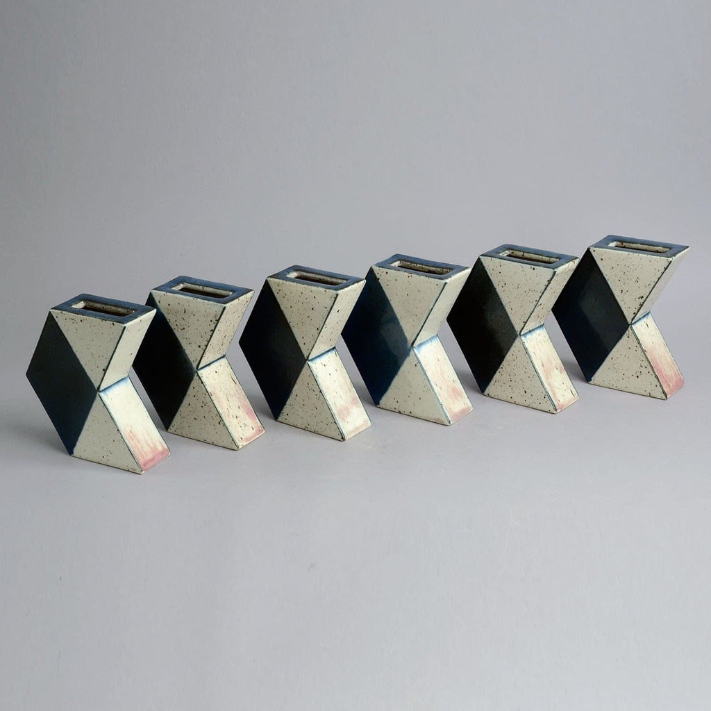 Karl Scheid, geometric vase with blue and white glaze E7014