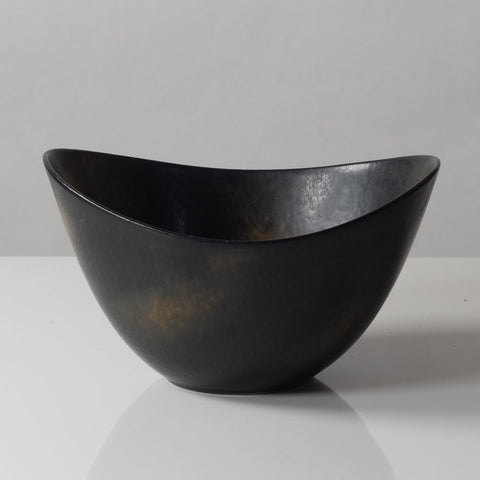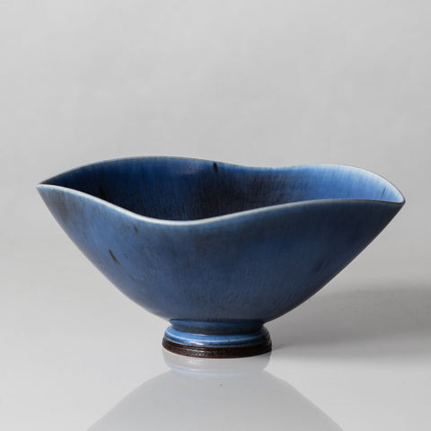 Gunnar Nylund for Rörstrand, Sweden, ceramic elliptical bowl with blue glaze L3378
