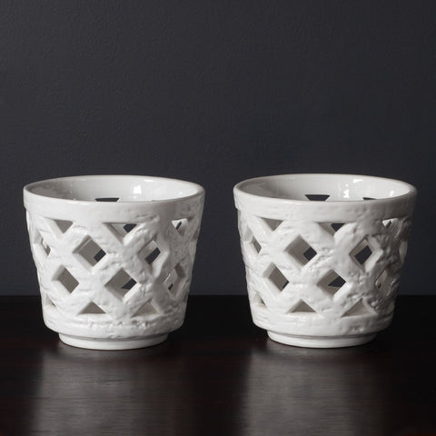 Gunnar Nylund for Rorstrand, Sweden, stoneware basket bowl with white glaze K2376