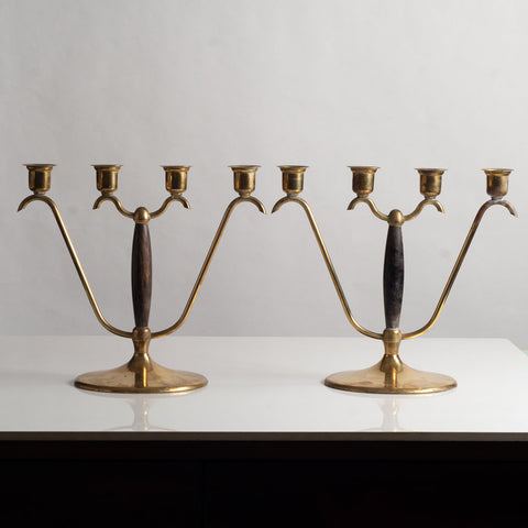 OH Lagerstedt, Sweden, pair of brass and wood candelabras L3781