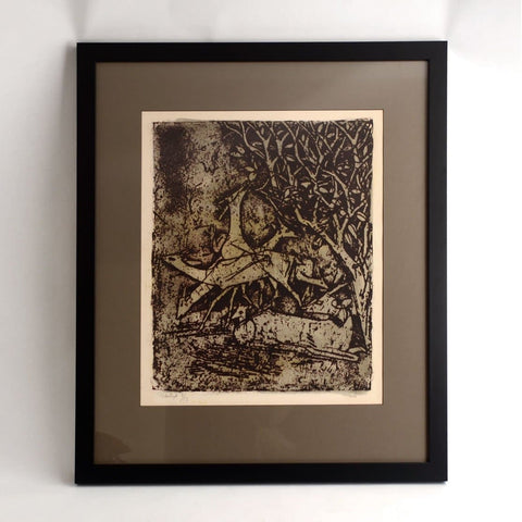 Lithograph with scene of deer in woodland by Axel Salto N6646
