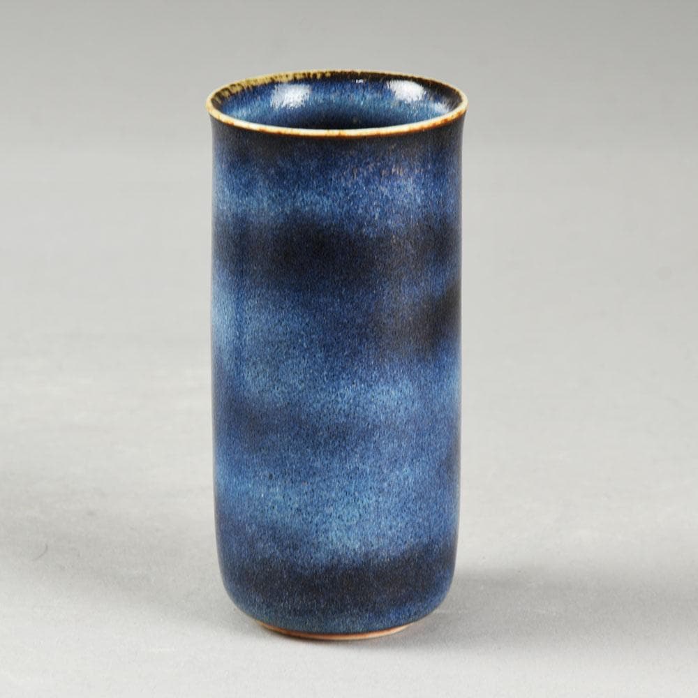 Stig Lindberg for Gustavsberg, unique stoneware cylindrical vase with blue glaze F8070