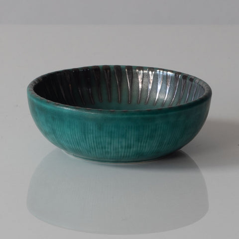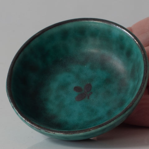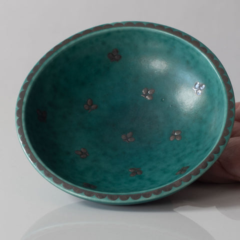 Wilhelm Kåge for Gustavsberg, "Argenta" bowl with green matte glaze with silver decoration H1582