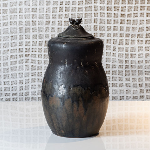 Ian Godfrey, UK, unique stoneware lidded sculptural vessel K2175