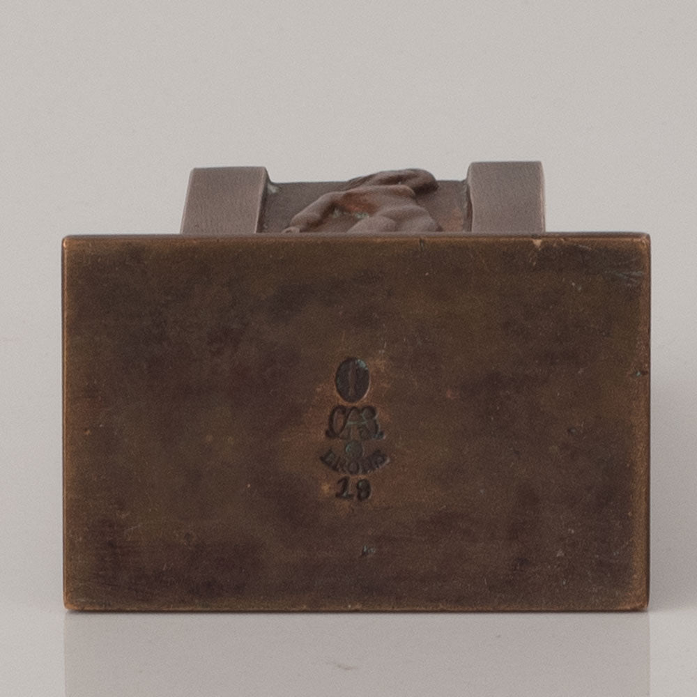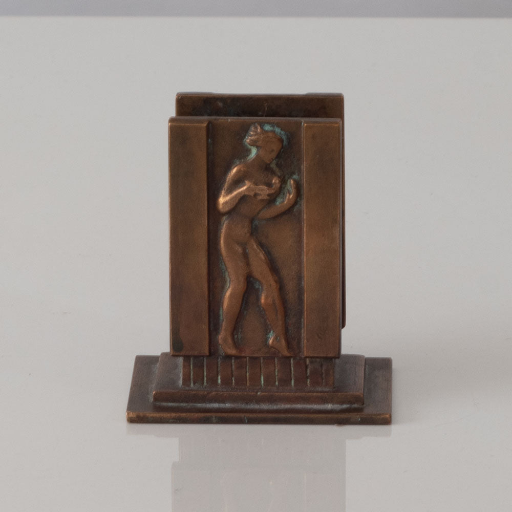 GAB, Sweden, square bronze letter holder with figures in relief L3545