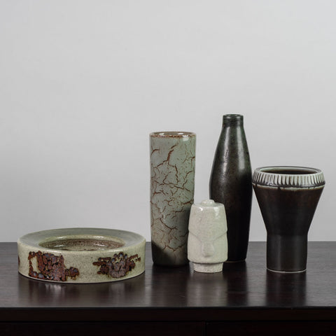 Unique stoneware "Farsta" footed bowl by Wilhelm Kage B3789