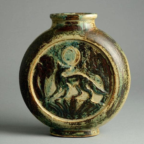 Flattened circular vase by Knud Kyhn for Royal Copenhagen A1094