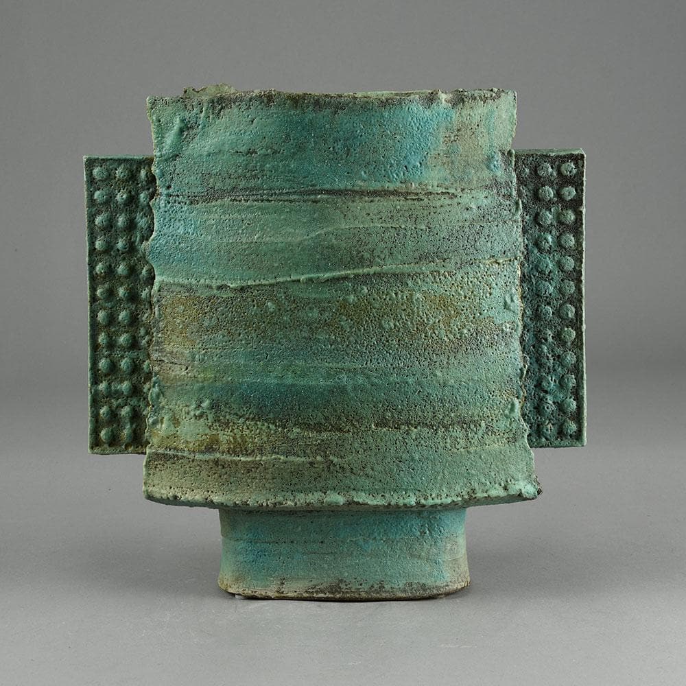 Colin Pearson unique stoneware "Winged Form" vase with pale blue glaze E7150