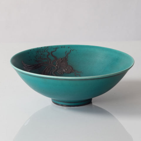 Wilhelm Kåge for Gustavsberg, Sweden, stoneware "Argenta " bowl with silver decoration L3017