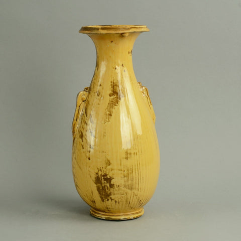 Teardrop shaped stoneware vase with buff haresfur glaze, c. 1950s-60s.