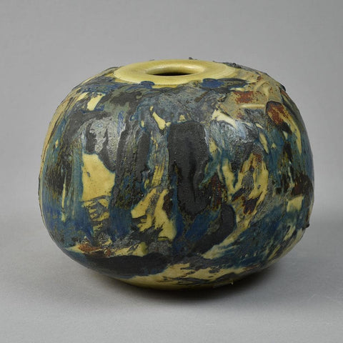 Peter Zweifel, own studio, Germany, unique stoneware vase with painterly blue glaze G9114