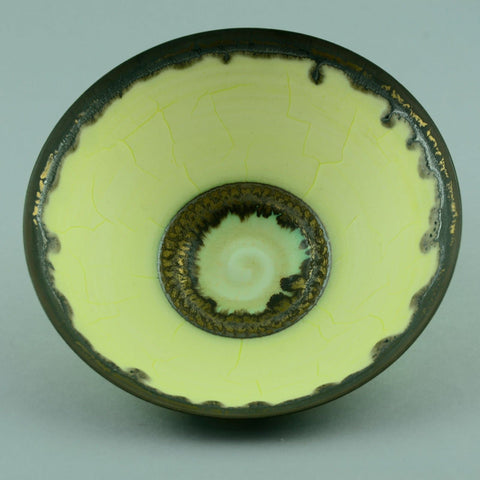 Peter Wills bowl with yellow and dripping metallic glaze D6030