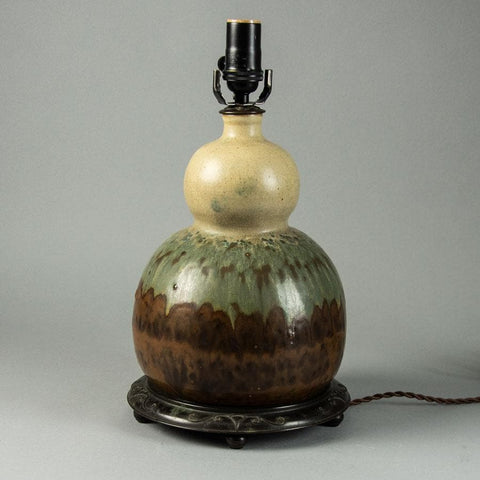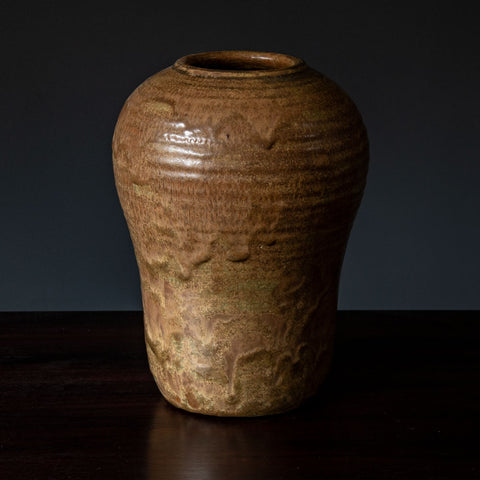 Unique stoneware vase with mottled purple semi gloss glaze. 1916