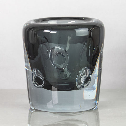 Asta Strömberg for Strömbergshyttan, clear gray glass vase with circular bubbles K2030