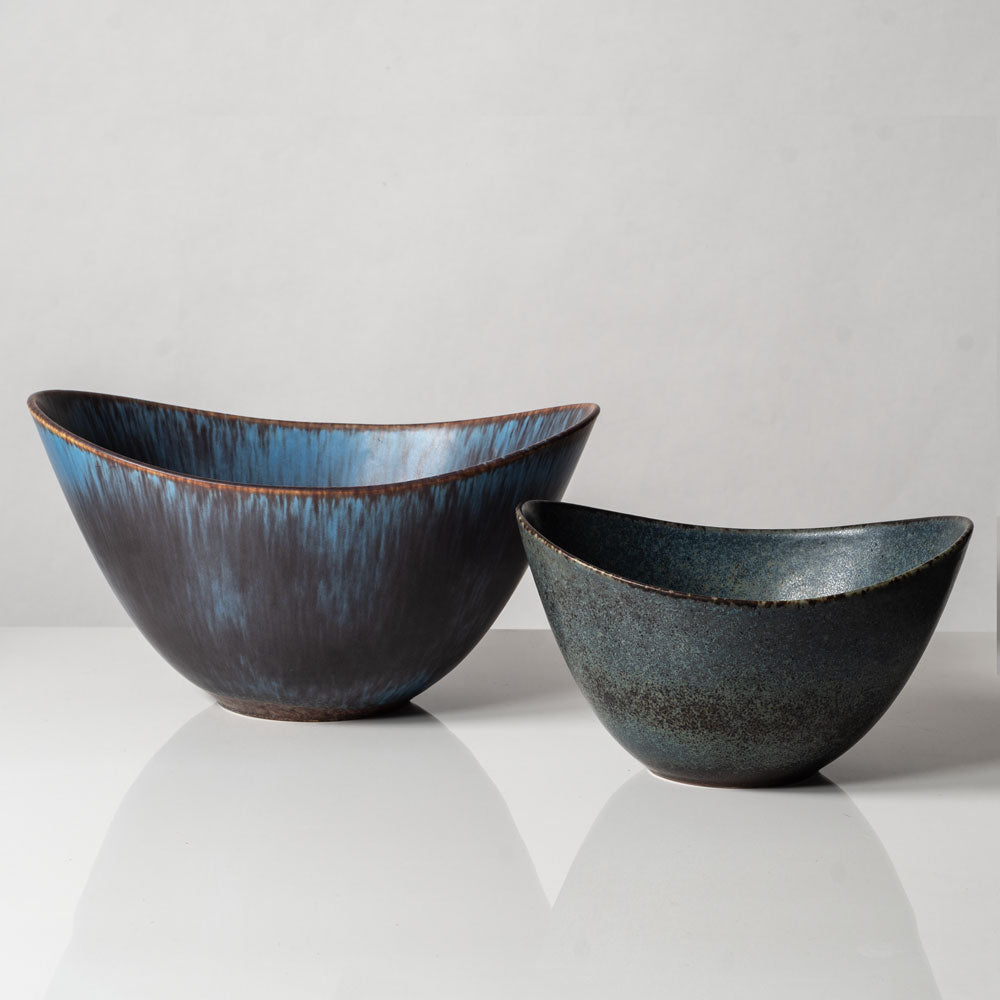 Two ovoid bowls with blue glaze by Gunnar Nylund for Rörstrand, Sweden