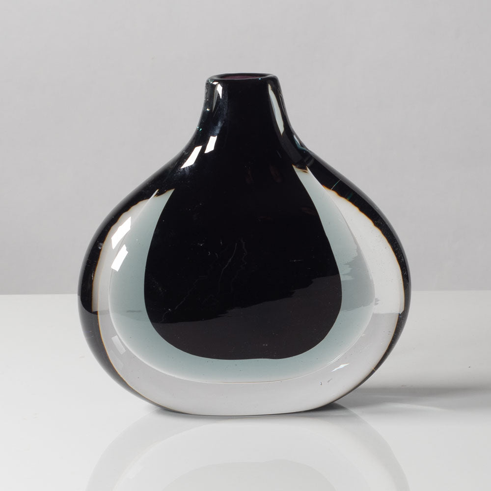 Vicke Lindstrand for Kosta, Sweden, "Sommerso" vase with black, gray and clear glass L3236