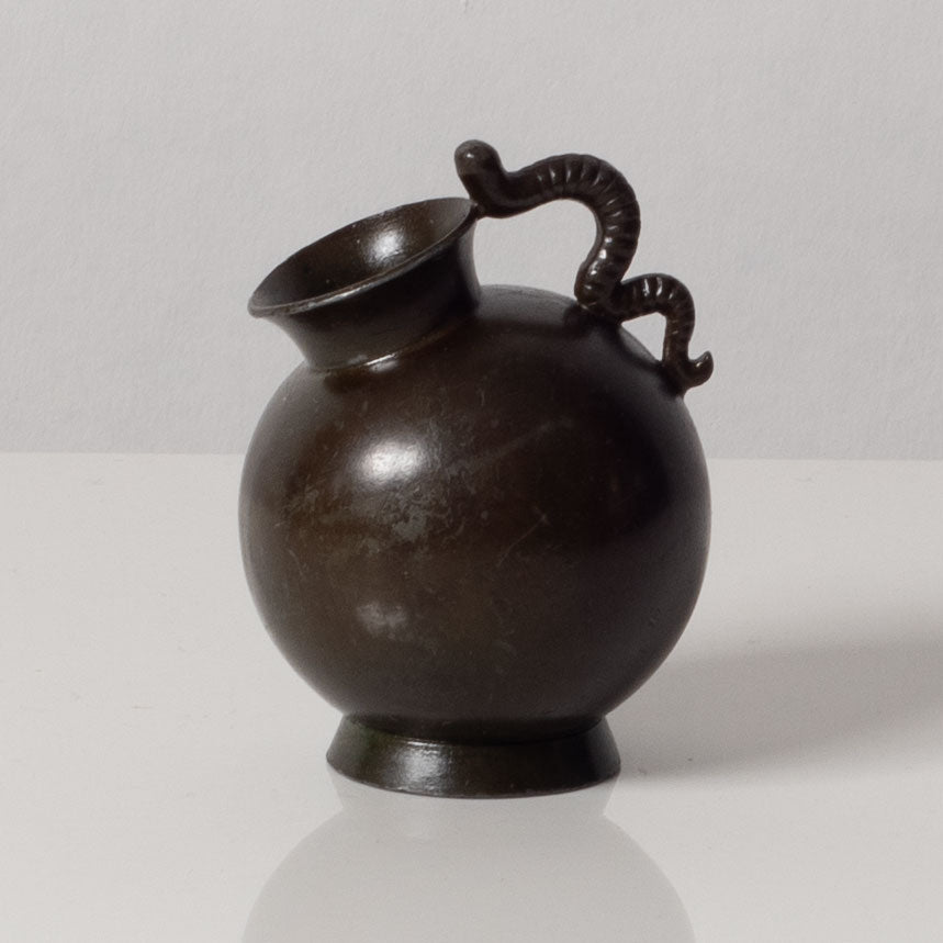 Just Andersen, Denmark, miniature disko metal jug with snake handle L3505