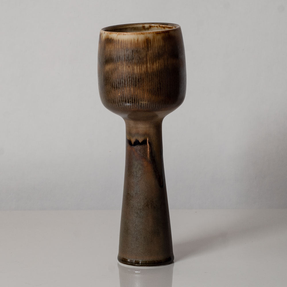 Unique stoneware goblet-shaped vase with light brown glaze, 1980.