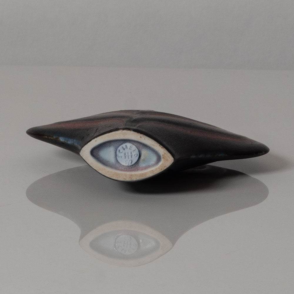 Unique stoneware spade-shaped vase with pink and charcoal gray glaze, 1989.
