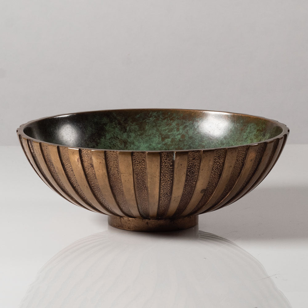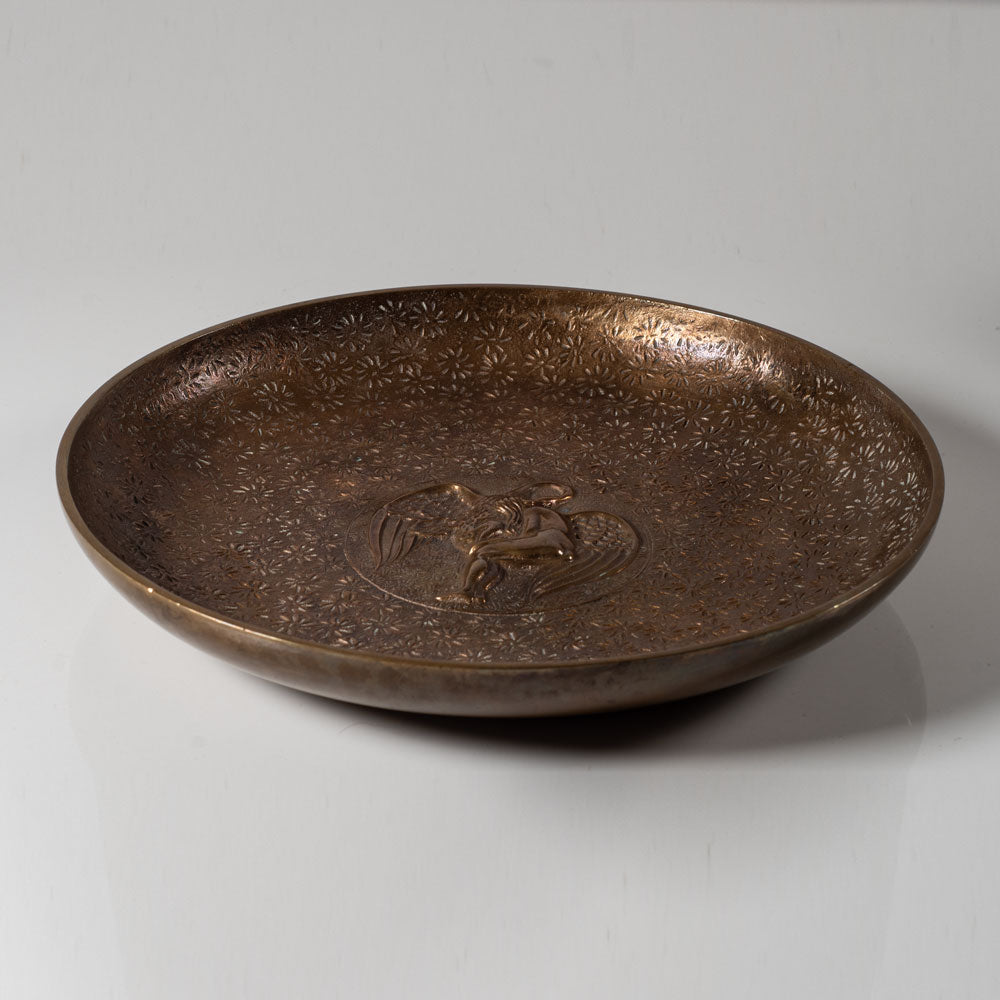 Bronze bowl with Leda and the Swan in relief to interior, 1930s.